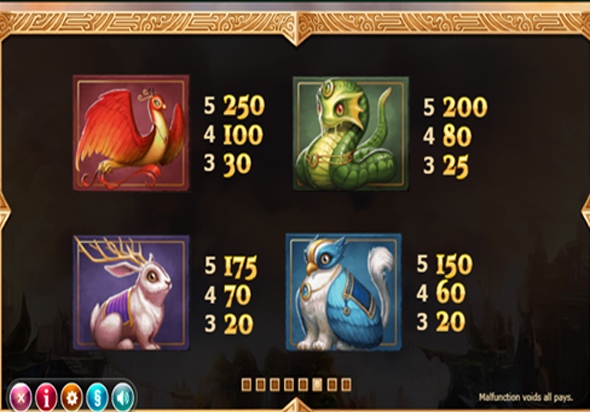 Самый дорогой символ в НирванеРоскошная красная птица принесет игроку самые щедрые бонусы. Даже три изображения, которые выстроились в ряд способы увеличить ставку в 30 раз. 4 картинки дадут множитель равный 100. А полная линия из красных символов подарит игроку 250 ставок на счет в фишках.